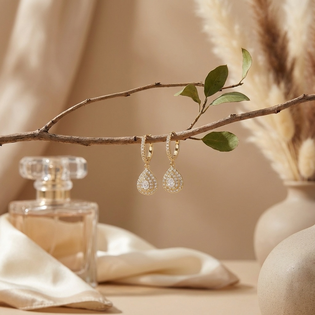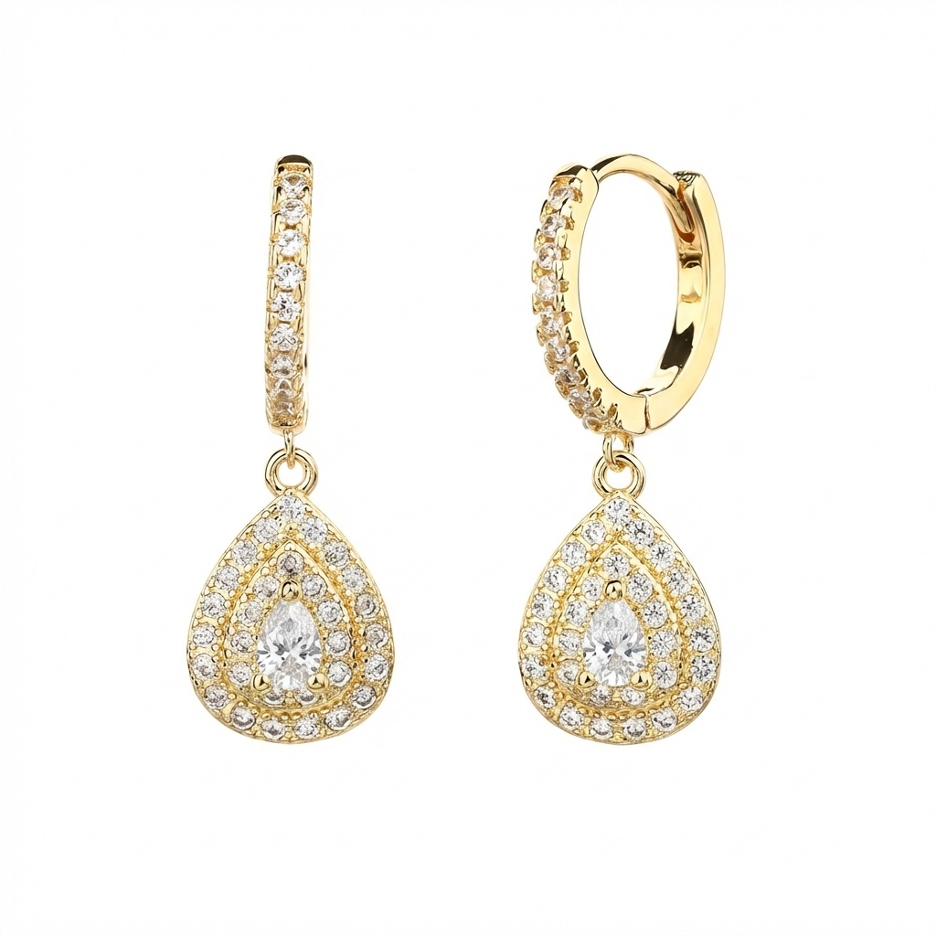 עגיל טיפה משובץ זהב